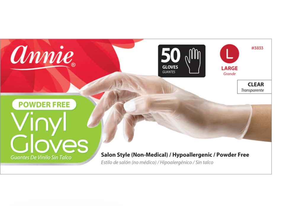 Annie 50 Count Clear Vinyl Gloves Powder Free Size Large