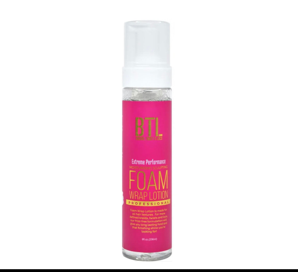 BTL Foam Wrap Lotion is made for all hair textures. For more defined braids, twists and locs, our frizz-free formulation hold and that finishing shine you’re looking for!